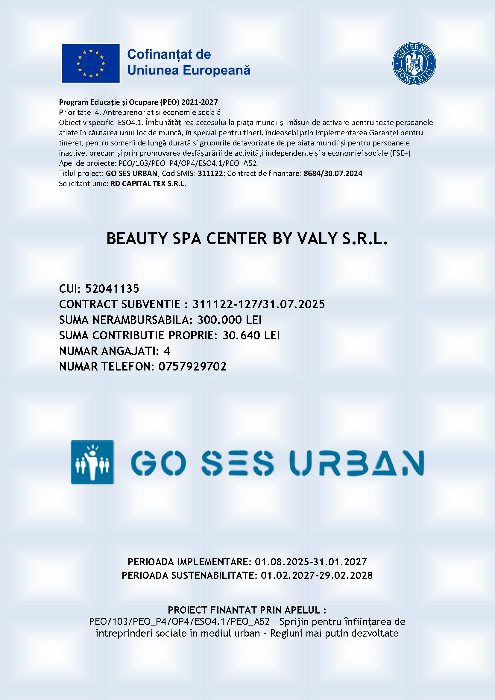 Acest proiect a fost realizat cu sprijin financiar printr-un program de cofinanțare al Uniunii Europene, având ca obiectiv dezvoltarea unui serviciu modern, responsabil și orientat către comunitate. Investiția a permis dotarea cu echipamente performante, crearea de locuri de muncă și implementarea unor standarde ridicate de calitate și siguranță.