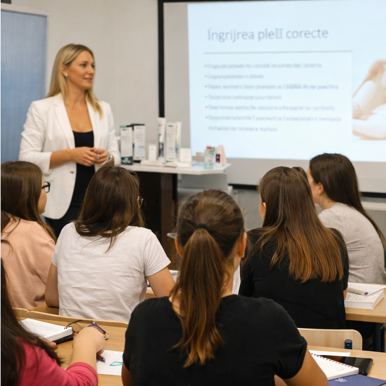 O dată pe an, organizăm o sesiune educațională gratuită destinată unui număr de cel puțin 10 eleve din clasele IX–XII. Sesiunea are ca scop informarea corectă despre îngrijirea pielii, sănătatea corporală, siguranța procedurilor estetice și importanța alegerilor informate.